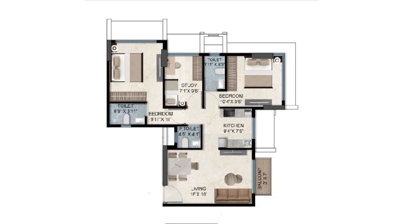 Velcon Vista – Chembur West – 3 bhk – Type 1